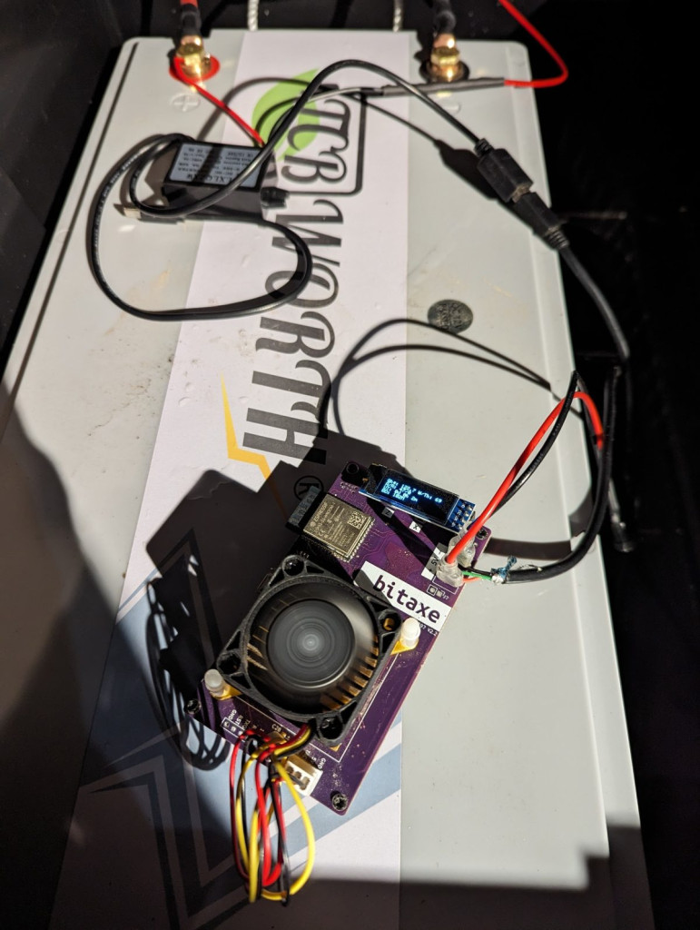 My tracker controllers and motors are powered from the same system batteries. I also tested using a Bitaxe to provide a gentle 15W of steady heat to keep the batteries warm throughout the day and night. I need to build a better enclosure, but this did work just fine. It also added a nice level of redundancy, in that if the Bitaxe was still hashing, then the local internet must still be working.