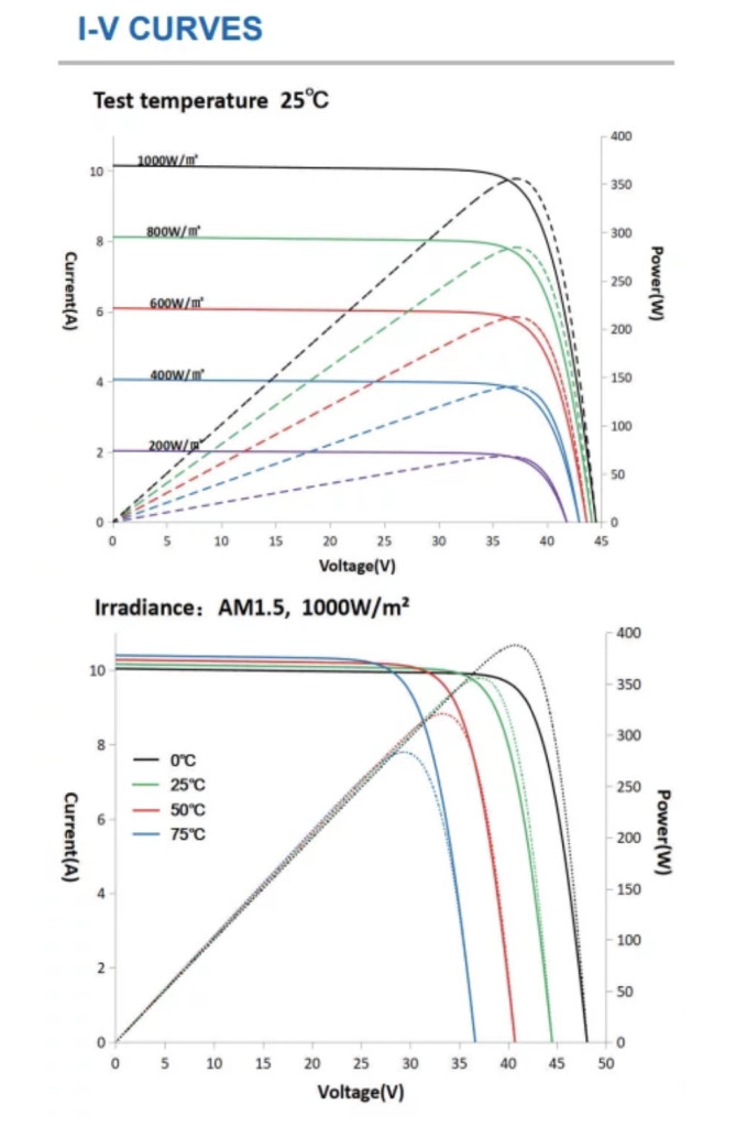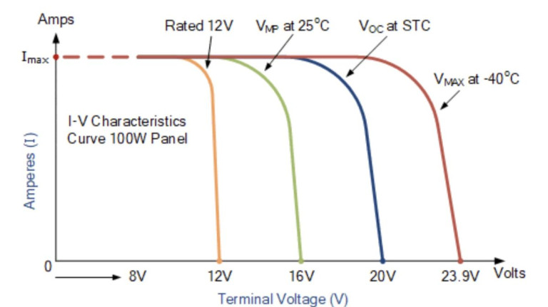 Thus Voc, and Vmp can drop 10% or more in the heat. For an 18V panel, this means a 1.8V drop in Vmp, or 16V. If the panel is driven anywhere near or above Vmp, its current output will drop off quickly.